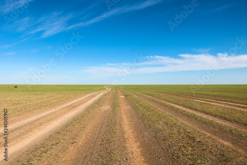 road to nowhere, road trip, road, field, mongolia, asia, landscape, sky, nature, grass, green, rural, blue, cloud, countryside, agriculture, summer, meadow, country, land, horizon, path, way, tree, farm, cloud, wheat, spring, dirt