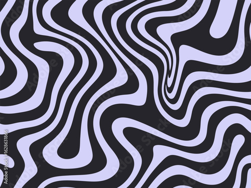 hallucinogen, abstract, background, wavy, flowing, stripes, line, modern, retro, groovy, vintage, 60s, 70s, hypnotic, optical illusion, dynamic, distorted, motion, vector, illustration, graphic, digital artwork, wallpaper, poster, banner, print, decorative, artistic, creative, design, cool, stylish, unique, texture, black, lilac, purple, swirl, liquid