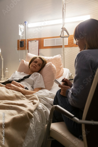 anxiety, assistance, bed, care, clinic, communication, consultation, conversation, counseling, depression, diagnosis, disease, empathy, girl, health, health care, help, hospital, disease, listening, medicals, medicine, mental health, note, patient, problem, professional, psychologist, psychology, recovery, room, sad, session, stress, support, taking notes, therapy, trauma, treatment, trust, visit, well-being, woman, worried