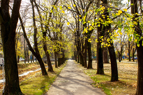 Public park in autumn - Vrnjacka Banja, Serbia.. Vrnjacka Banja is a popular tourist destination in Serbia, a place that every year visit a millions of tourist. Also, here is placed a several source o
