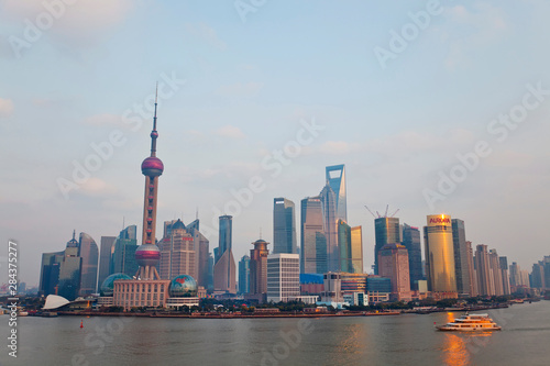 barge, bund, city landscape, colours, downtown, industry, scenic, skyline, skyscraper, stream, sunset, urban