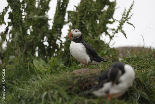 puffin, iceland, bird, wildlife, wild, animal, encounter, nature, travel, tour tourism, island, beautiful, rock, cliff, ocean, sea, grass, feather, red, bird, beak, white, black, yellow, colours