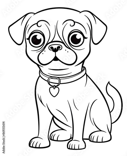 Pug dog cute cartoon outline illustration. Clipart image for sticker, children coloring books