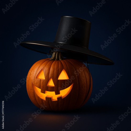 Pumpkin + Black Lacquer Gat, Dark-Blue Gradient Background, Clean Right Space