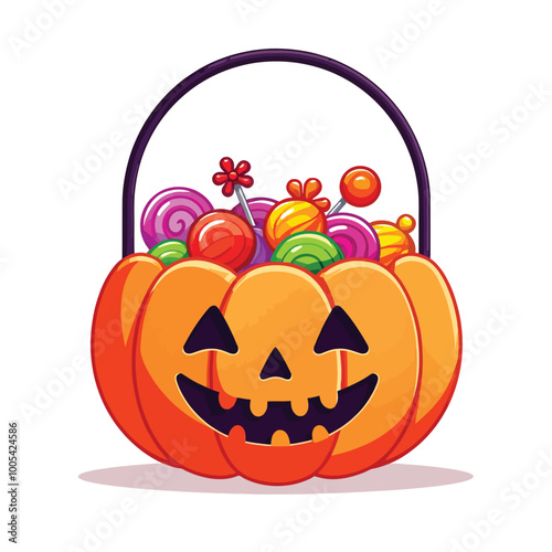 Pumpkin Filled with Halloween Candy Illustration – Fun and Spooky Design for Halloween Projects