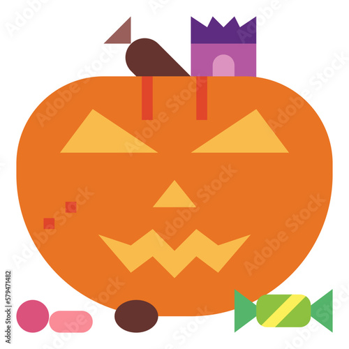 pumpkin, lantern, candy, halloween, icon, flat, graphic, illustration