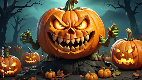 pumpkin fruit cartoon character illustration with scary expression on hellowen event