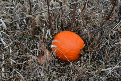 garden, pumpkin, autumn, orange, fall, season, halloween, thanksgiving, seasonal, growth, ripe, gourd, ground, dry, grass, gardening, crop, harvest, cornucopia, nature, vegetable, farm, agriculture, field, season, decoration, plant, holiday, hay, leaf, squash, patch