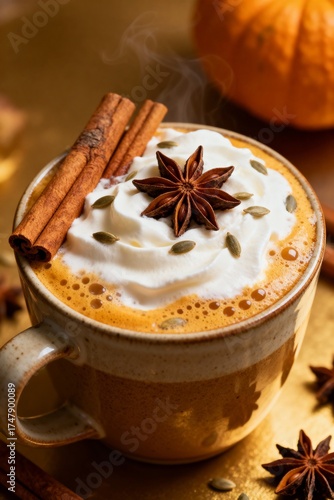 Pumpkin Spice Latte with Cinnamon and Star Anise