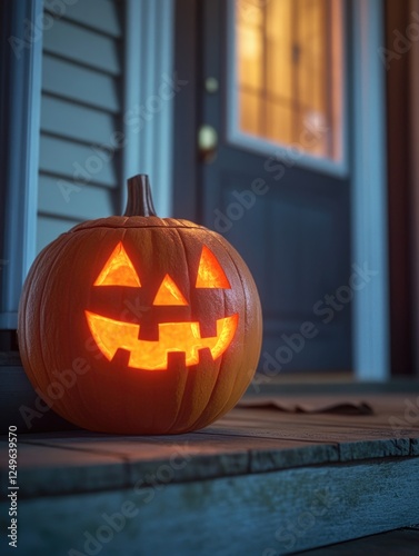 halloween, carved, pumpkin, glowing, eye, skittish, decoration, autumn, celebration, front, door, scarey, face, step, holiday, light, illumination