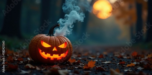 Pumpkin with realistic smoke for Halloween night, eerie realism, halloween pumpkins, autumn nights