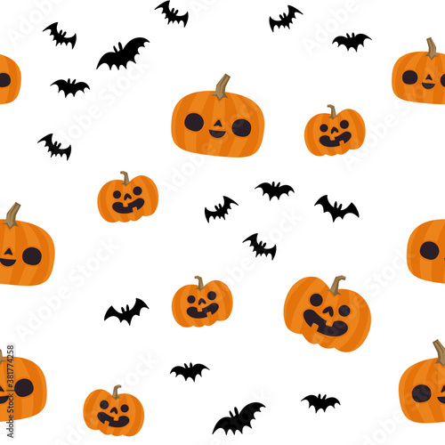 Pumpkins and bats halloween pattern. Seamless texture with cute and funny illustrations.