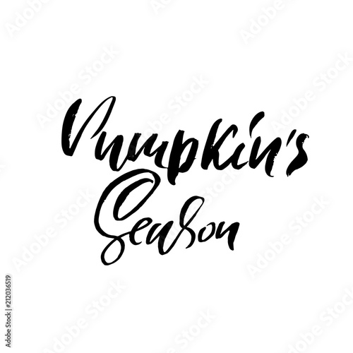 Pumpkins season modern brush lettering. Black and white typography thanksgiving banner. Vector illustration.