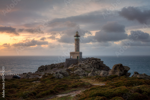 Punta Nariga lighthouse at sunset. Malpica de Bergantiños, Galicia, Spain.