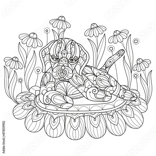dog, little dog, puppy, flower, floral, leaf, garden, animal, nature, pet, pen drawing, cartoon, black, line, art, drawing, vignetting, doodle, pattern, abstract, signs, tattoo, adult, graphic, colouring, page, book, symbol, design, vector, illustration, vintage, decoration, white, background, colouring, silhouette, mandala