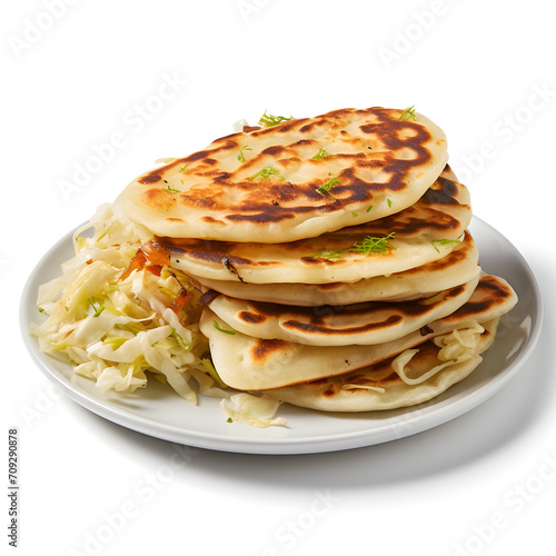 Pupusas with cabbage on a white background. A savory culinary treat from El Salvador.