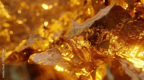 Pure gold ore from golden mine shine texture background
