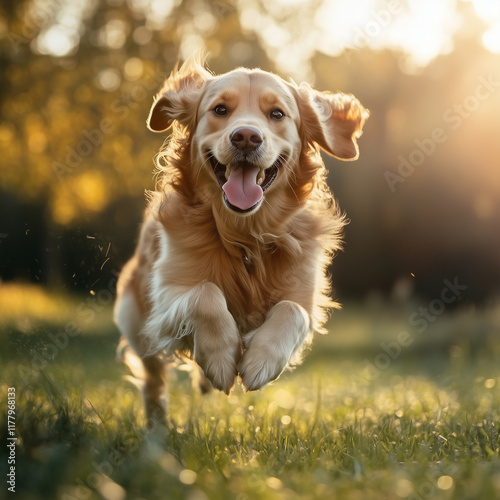 Pure youth crazy. young dog is posing.Spring, summer concept, playful happy pet dog puppy running in the grass and listening with funny ears