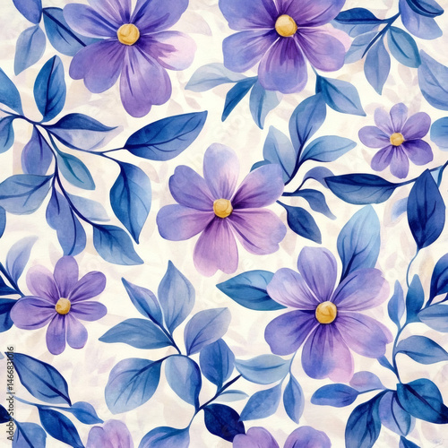 purple, blue, anemone, floral, pattern, watercolor, botanical, art, delicate, vibrant, nature, garden, blooming, artistic, colourful, pretty, aethereal, whimsical, decorative, feminine, graceful, aesthetic