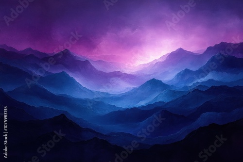 mountain, range, peak, sky, cloud, blue, purple, violet, horizon, landscape, nature, scenery, art, digital, illustration, artistic, abstract, colours, gradient, fog, mist, twilight, dawn, dusk, sunrise, sunset, mountainous, serene, peaceful, calmness, calm, dramatic, beauty, dreamy, fantasy, high-coloured, intense, natural