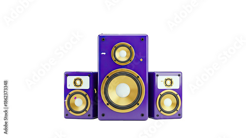 speaker, audio, audio system, music, purple, gold, high fidelity, stereo, driver, equipment, electronic, modern, sleek, design, loudspeaker, bass, treble, multimedia, entertainment, performance, technology, shiny, glossy, vibrant, bold, statement, collection