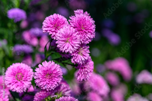 fresh, garden, purple, plant, closeup, blooming, violet, nature, blossom, floral, bloom, beautiful, botany, beauty, colours, natural, colourful, background, flower, leaf, green, aster, daisy, botanical, spring, summer, flora, park, macro