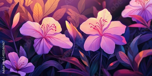 flower, purple, pink, flower petals, delicate, vibrant, lush, garden, evening, warm, light, glow, sunlit, nature, botanical, floral, elegant, soft, serene, colourful, seasonal, organic, seamless, wallpaper, background, banner, decorative, tranquil, no people