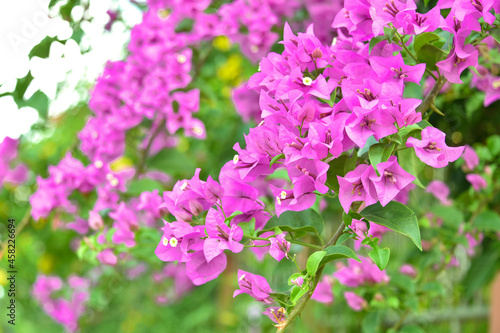 Purple bougainvillea flowers in background