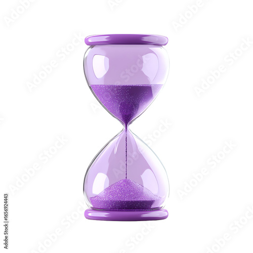 Purple Cartoon Hourglass with Sand – 3D Icon Render – Isolate on Transparent White Background