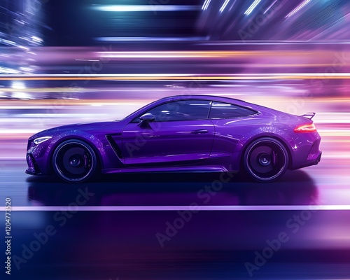 purple, coupe, car, night, speed, motion, blur, light, city, street, neon, urban, dynamic, fast, vehicle, modern, sleek, design, wheel, tire, asphalt, road, background, colours, gradient, dark, bright, luxury, sport, automotive, performance, power, energy, style, glossy, metallic, headlamp, spoiler