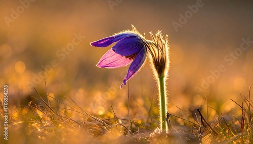 flower, purple, sunlight, gold, spring, meadow, nature, bloom, beauty, detail, soft, sharpened, wild, grass, light, flora, high-coloured, close, up, tender, sunrise, sunset, vibrant, isolated