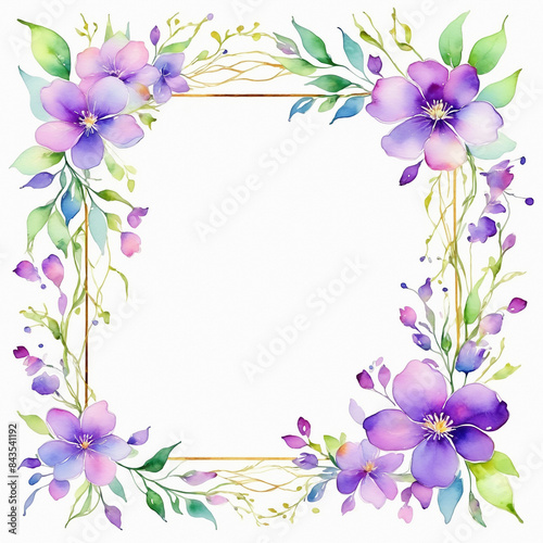 watercolor, frame, border, card, flower, floral, leaf, framework, background, template, advertisement, scrapbook, greeting, decoration, banner, art, illustration, painting, style, canvas, generative, ai, nature, purple, blank, space, foliage, tropical, design, bouquet, ornament, blossom, invitation
