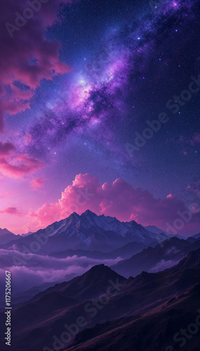Purple gradient mystical moonlight mountain sky with clouds and stars phone wallpaper background 4k