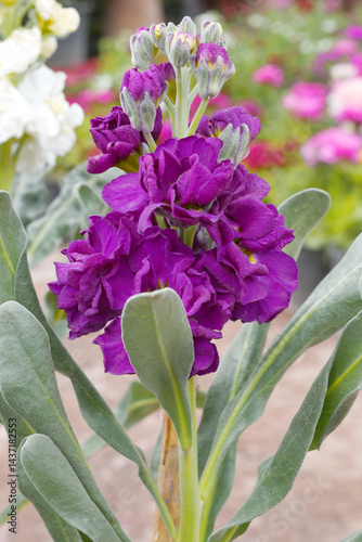 Purple Hoary Stock, Purple Hoary Stock or Matthiola Incana is a member of the Brassicaceae family of flowering plants. It's also commonly known as Brompton Stock, Common Stock, Purple flower in garden