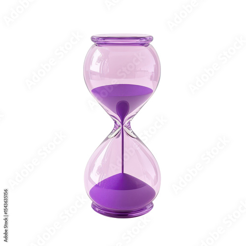 purple hourglass, purple hourglass with sand flowing from the top chamber to the bottom, isolated on transparent background