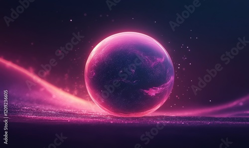 Purple pink glowing gradient sphere on black background, vibrant grainy banner, Generative AI