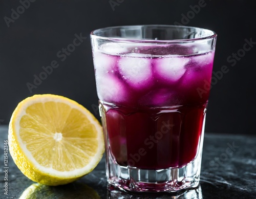 Purple Rain Cocktail in a Glass on a Sleek Black Background