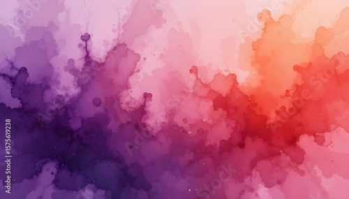 Purple Red Orange Grunge Watercolor Background with Textured Artistic Design