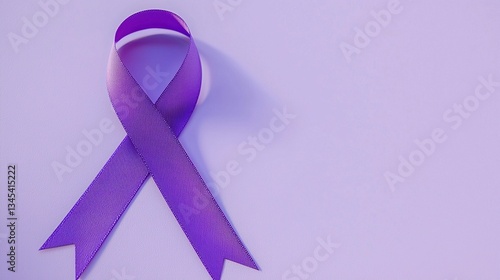Purple ribbon for cancer awareness on a solid background, symbolizing support and unity in the fight against cancer. Representing strength and resilience.