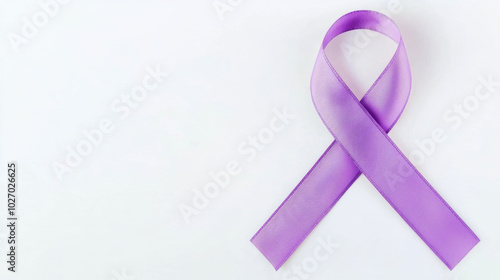 Purple ribbon shaped like lungs on white background for cancer awareness