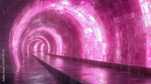 tunnel, neon, pink, futuristic, hallway, interior, light, design, architecture, three-dimensional, abstract, modern, empty, space, perspective, geometric, passage, glow, illuminated, corridor, path, structure, surface, pattern, symmetry, digital, illustration, visual, concept, render, art, future