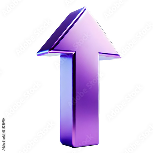 purple upward arrow isolated on a white background. Clean and glossy design. Concept of direction and rise. 3D Rendering
