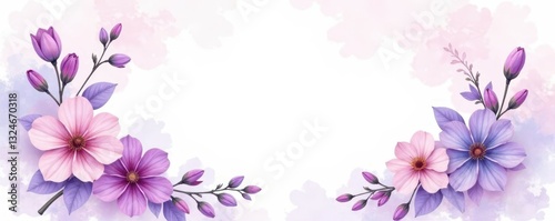 Purple watercolor floral wreath funeral program layout, obituary, sympathy, elegant