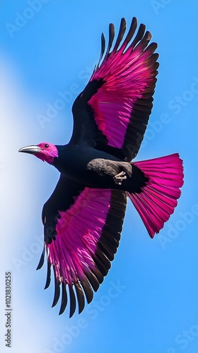 Purple-throated Fruitcrow Bird Walking in Nature Under Blue Sky, Photo Realistic, Wallpaper, Cover and Screen for Smartphone, PC, Laptop, 9:16 and 16:9 Format
