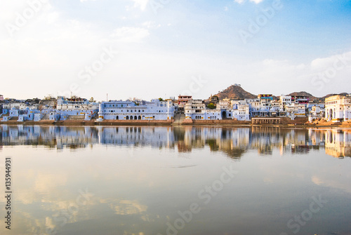 Pushkar, Rajasthan . .Cityscape above holy lake Pushkar city, popular tourist town in Ajmer district of India