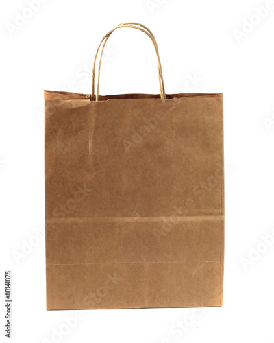 Пустой бумажный пакет, изолированный на белом. Упаковка.