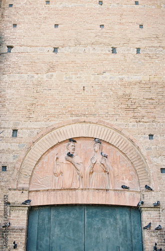 italy, architecture, city, carving, carved, building, walled, blue, wall, bird, village, art, vacation, ancient, tuscany, trip, travel, tower, holiday maker, tour tourism, statue, relic, pigeon, people, outdoors, wallpainting, italian, humorous, holiday, history, funny, flock, explore, european, europa, engraving, couple