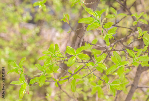 Put forth fresh green leaves and buds of banyan tree in the tropical forest