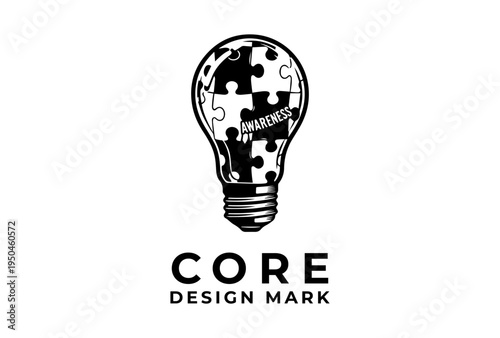 Puzzle Light Bulb Symbol Presented As Black Vector Silhouette Sketch Engraving Logo Illustration Representing Autism Awareness Day Education Concept