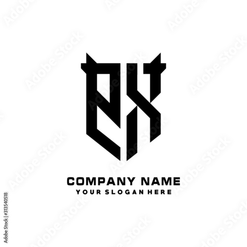 PX Initial letter Shield vector Logo Template Illustration Design, black and white color